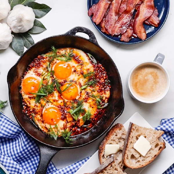 Upgrade your breakfast with these crispy, colorful fried eggs. crunchy chili oil infused with fragrant sichuan peppercorns and chinese five-spice gives a slight kick to perfectly fried eggs for the best breakfast combo ever!