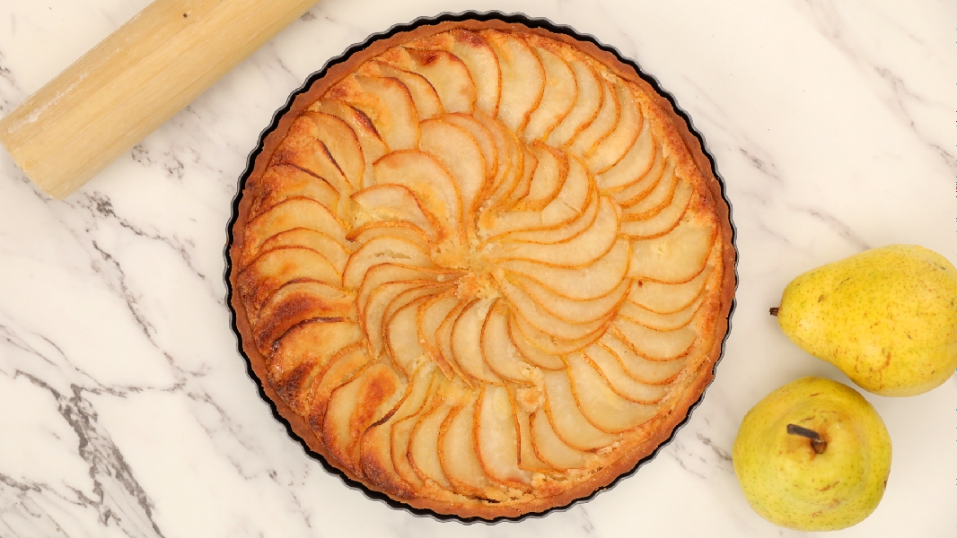 Impress your guests with this elegant pear tart that's the ultimate combination of sweet and tangy. with a crispy crust and juicy pear slices, it's the perfect dessert for any occasion.
