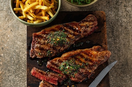 Steak and chips make an unbeatable pairing and are elevated even further here with the addition of a smokey herb butter. serve with a fresh green salad, or watercress.